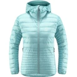 Altijd handig in de bergen, de Haglfs SPIRE MIMIC HOOD WOMEN is een donsjack met lange mouwen en capuchon voor dames, dat vrije beweging mogelijk maakt.
