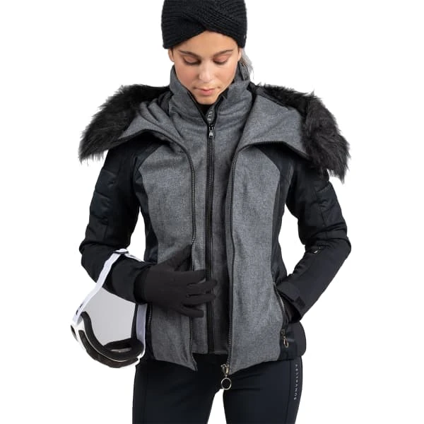 Talrijke functionele details maken het gemakkelijk om de piste op te gaan, zoals zakken met rits, lycra manchetten en een capuchon met afneembaar synthetisch bont.